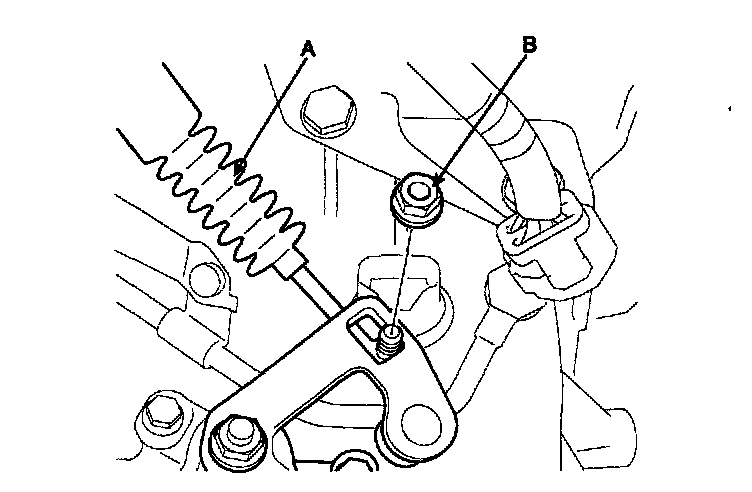 4. Remove the control cable to transaxle range switch(A) mounting nut(B).