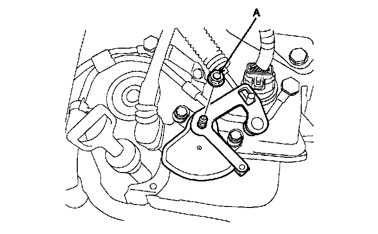 5. Remove the transaxle range switch manual lever mounting nut(A).