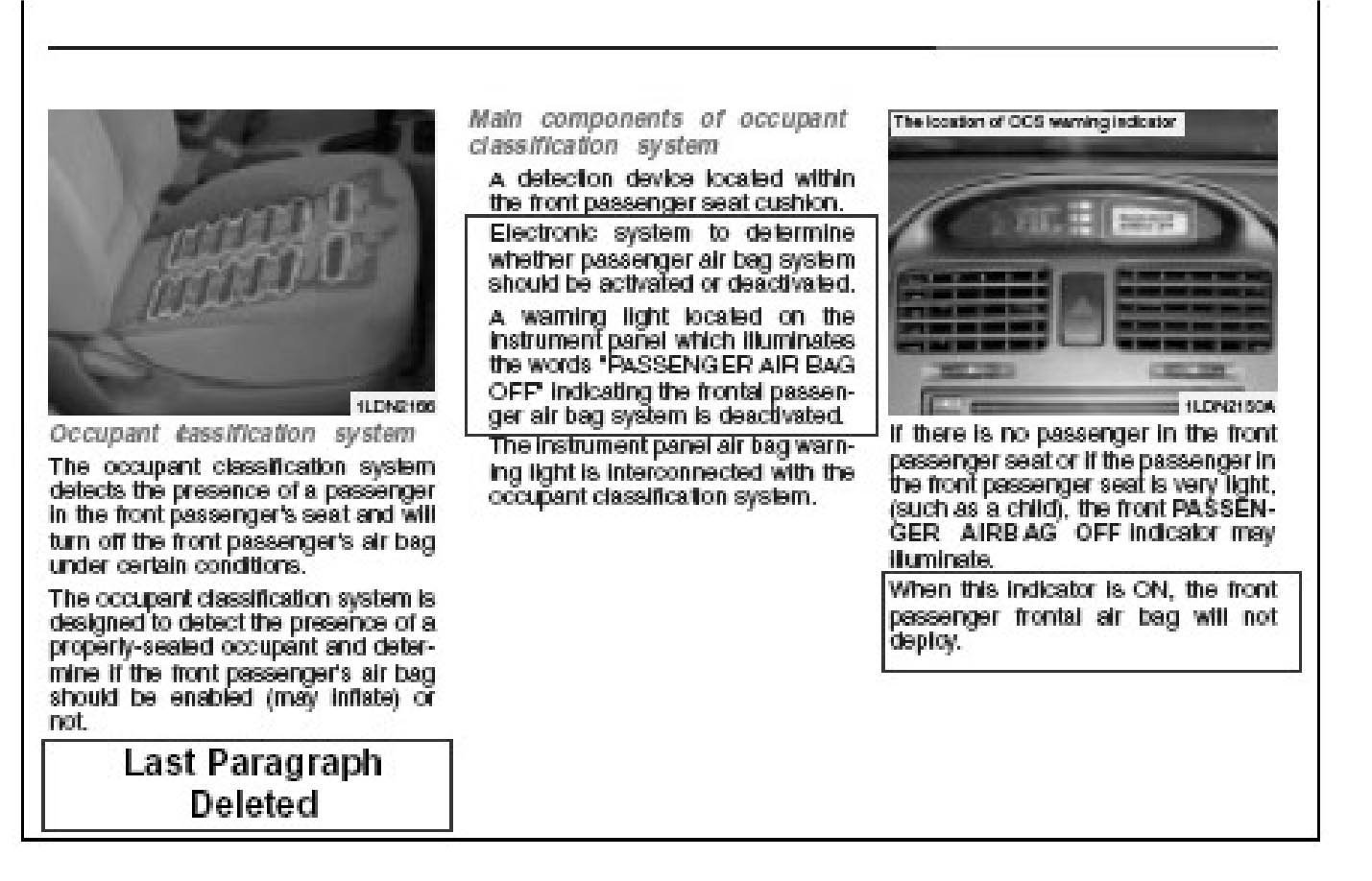In addition, for 2006MY ONLY you will be required to insert a substitute page in the Spectra Owner's Manual of each customer for whom you conduct this service campaign logic change. The customer must be notified of this update to their Owner's Manual by showing them the revised page to ensure they are aware of it (see illustration)