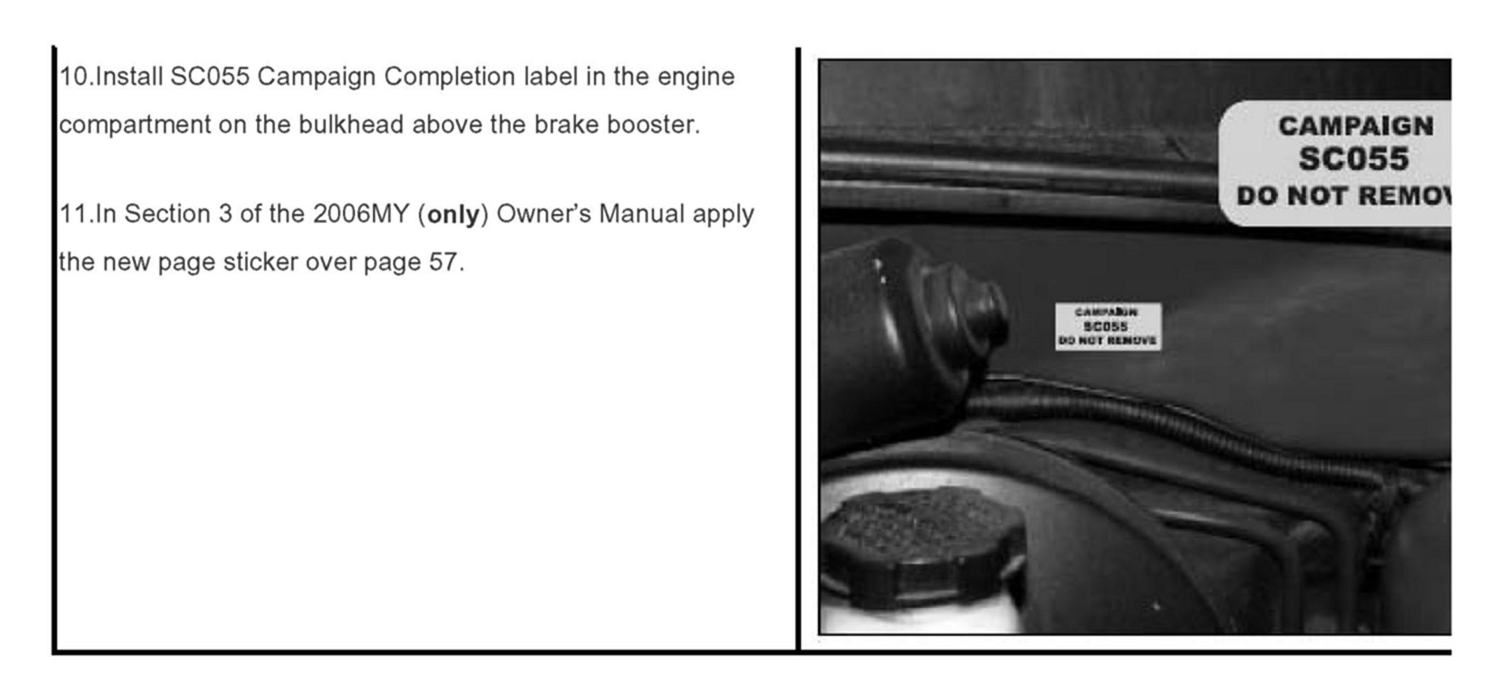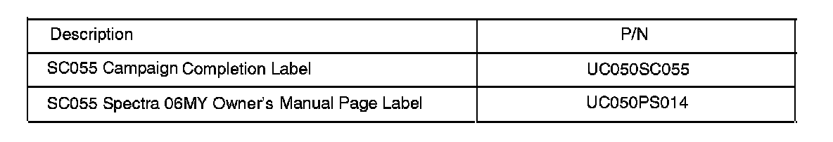 Extra SC055 Campaign Completion Labels are available at no cost through your regional PDC. The SC055 Spectra 06 MY Owner's Manual Page Label will be shipped directly to dealers, for additional labels order through your regional PDC.