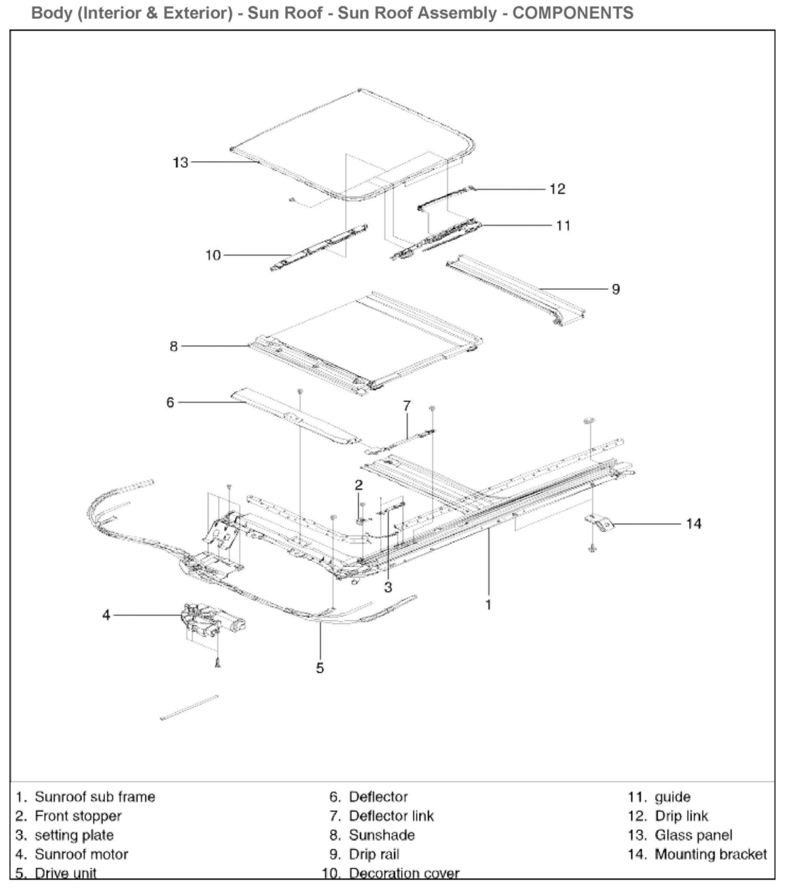 Sunroof Assembly Components: