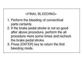 This procedure should be followed to ensure adequate bleeding of air and filling of the ABS unit, brake lines and master cylinder with brake fluid.