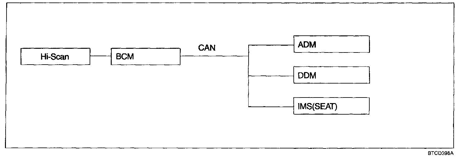 2. Only BCM communicates directly with Hi-scan, and the other units perform self-diagnostic function by BCM through the mediator of CAN or LIN.