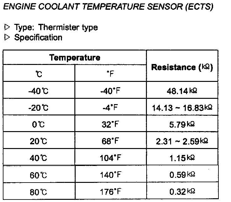 Coolant Temperature Sensor/Switch (For Computer): Specifications