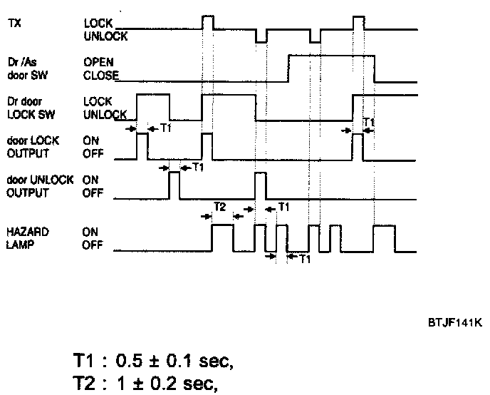 4. When the TX Lock signal is received, the door Lock output shall be ON for T1.