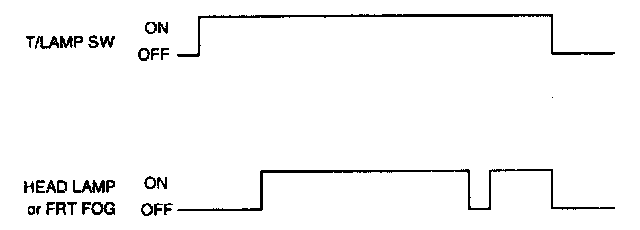 1. If the head lamps low beam are turned on by head lamps low beam switch or by auto light switch when the ignition switch is turned from the ON to ACC or OFF positions.