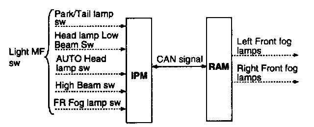 - When Auto light function activated and Auto light Sensor signal status is 'HL ON' and Front Fog lamp sw ON