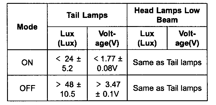 2. Auto light Sensor detection table