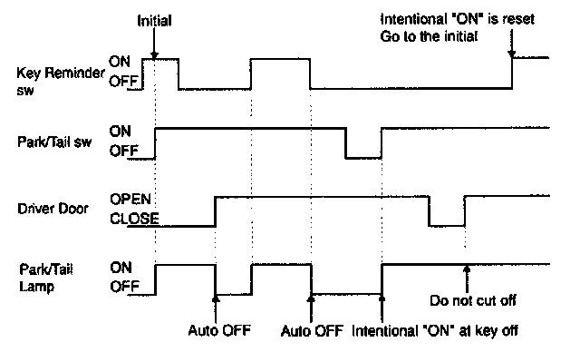 - If Key reminder switch is ON and Park/Tail Lamp switch is ON, Intentional "ON" should be reset