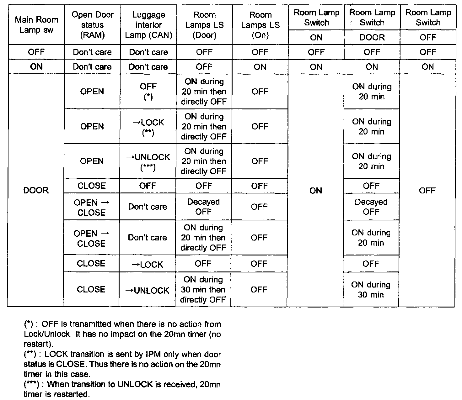 - After 20 minute Room Lamp OFF at door open, Room lamps are turned ON again when: