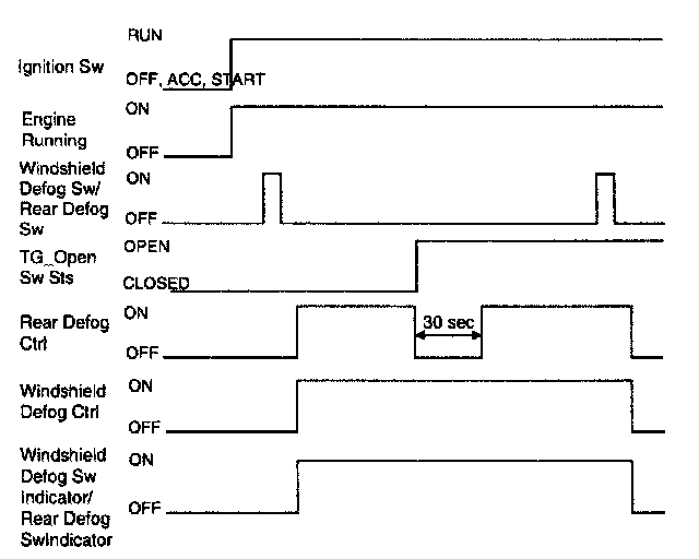 - If the user turns on rear defog function while this pause is going on, Rear defog ctrl is set to ON only at the end of the pause.