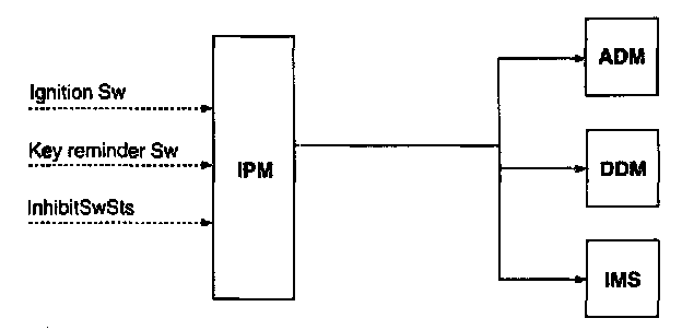 The IPM receives on digital input the status of the seat belt switch and sends the seat belt warning on the CAN network.