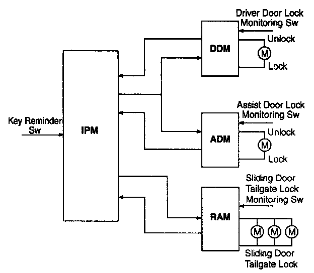 - RAM will pass this signal to LH PSD and RH PSD then the burglar alarm state is decided depending on the vehicle condition.