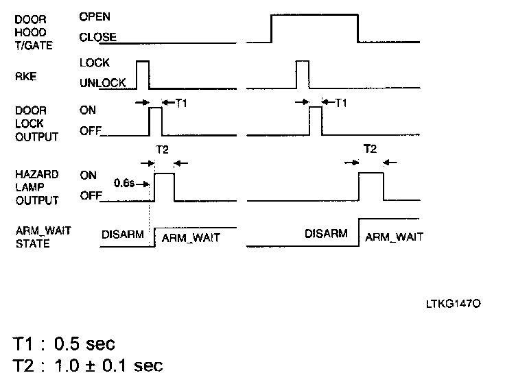 - If RKE unlock signal is received, then UNLOCK output is issued together with the flashing of hazard lamp (two times) and the system enters into the DISARM condition.