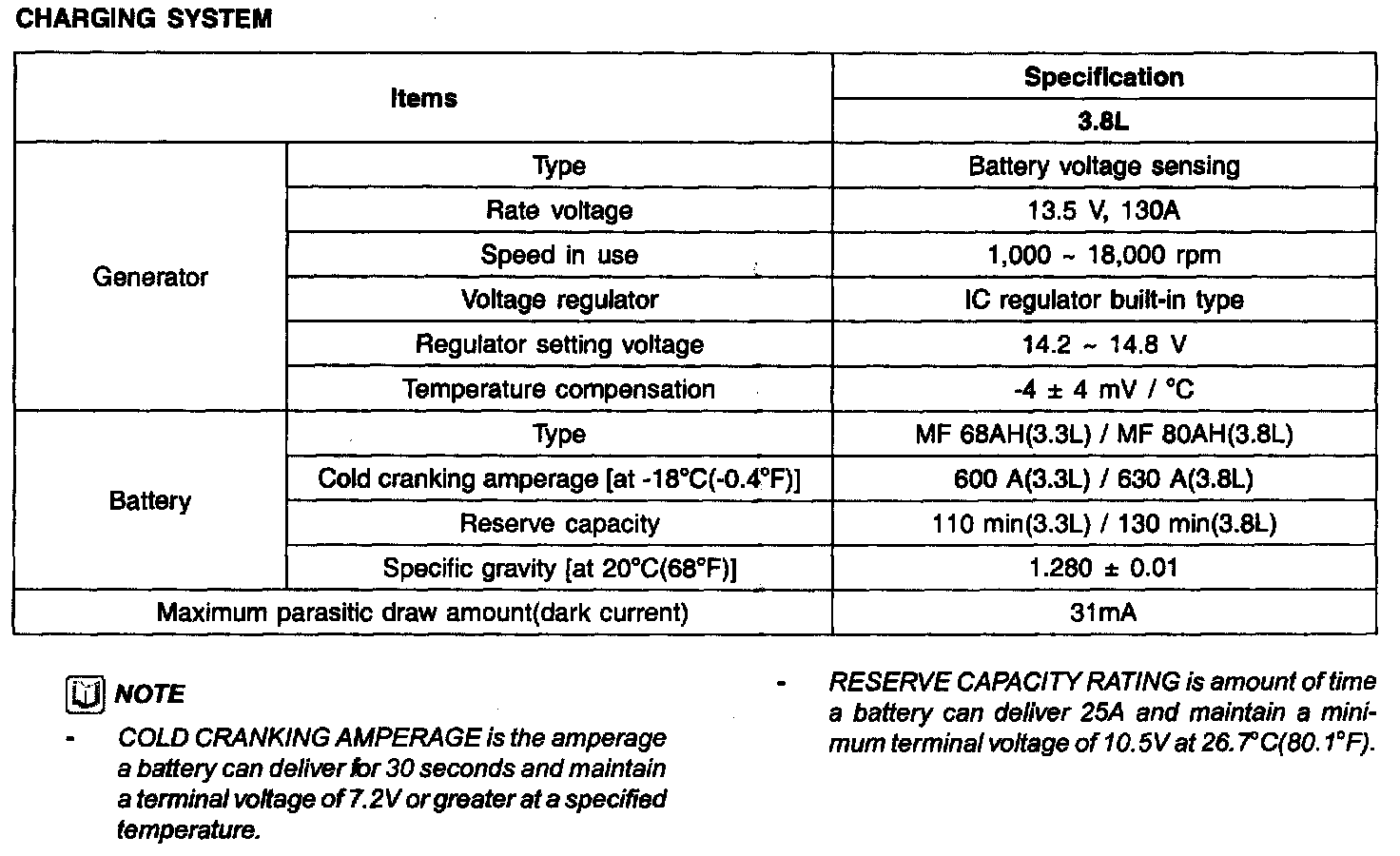 Specification - Charging System: