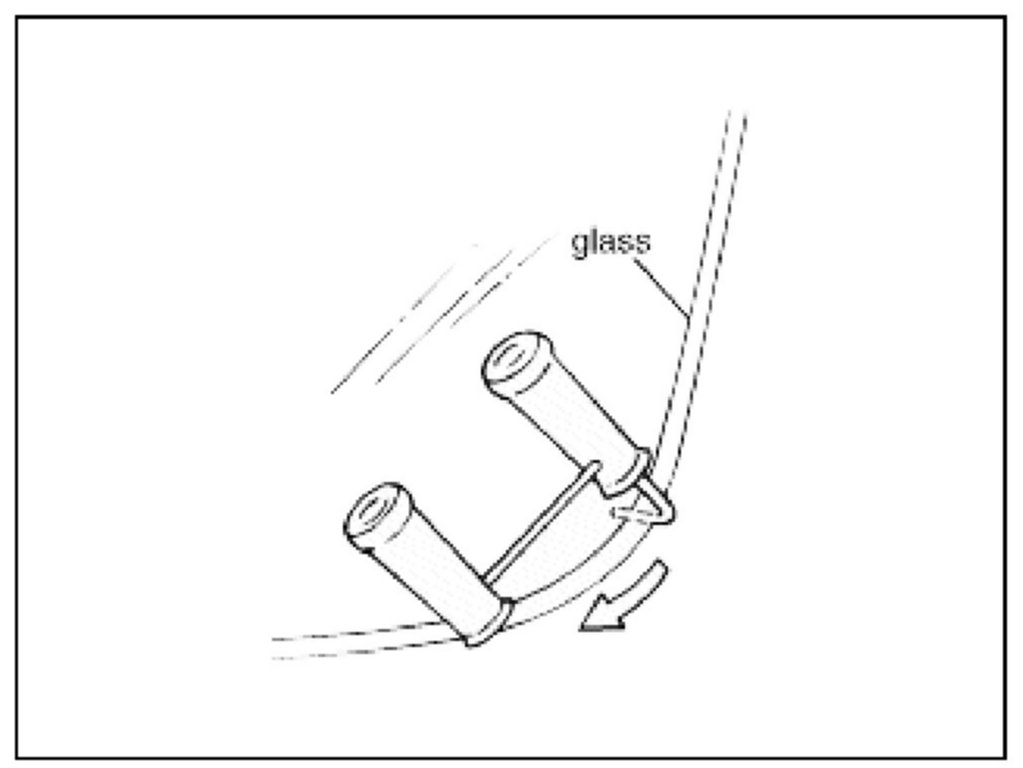 10. Install the glass into the body making sure the glass rests upon the two spacers at the bottom of the windshield.