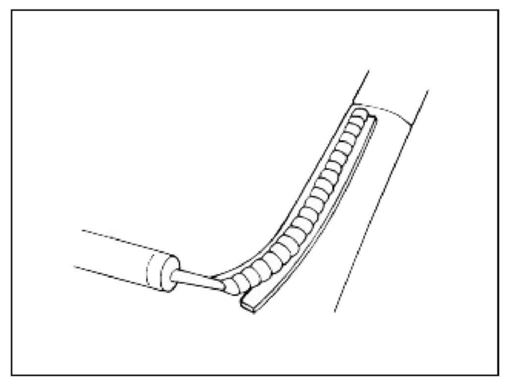 7. Install the self-adhesive foam dam to the body where the original dam had been.