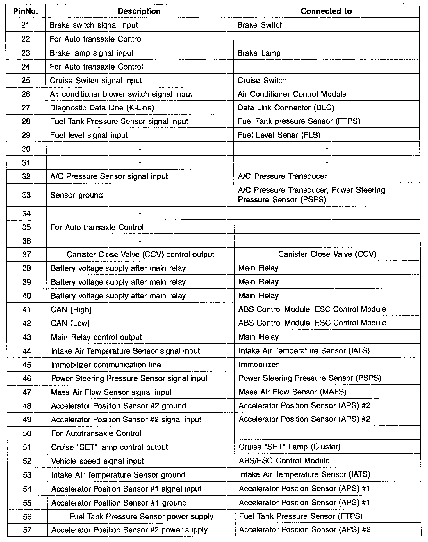 PCM TERMINAL INPUT/OUTPUT SIGNAL - CONNECTOR [C144-B]