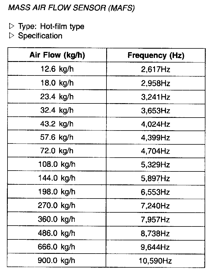 Mass Air Flow Sensor (MAFS) - Specifications: