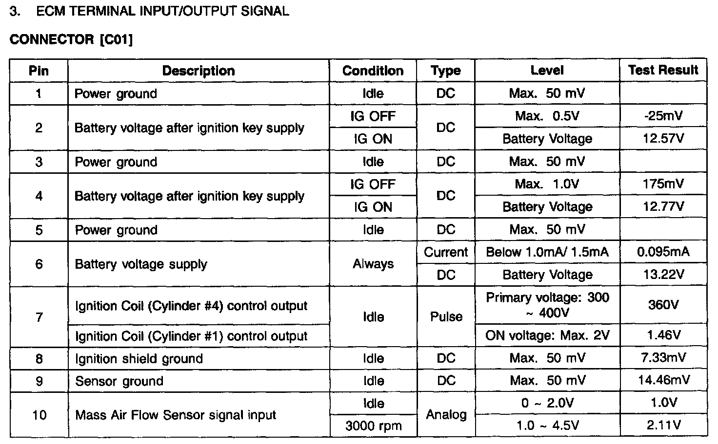 ECM Terminal Input/Output Signal - C01 (Part 1):