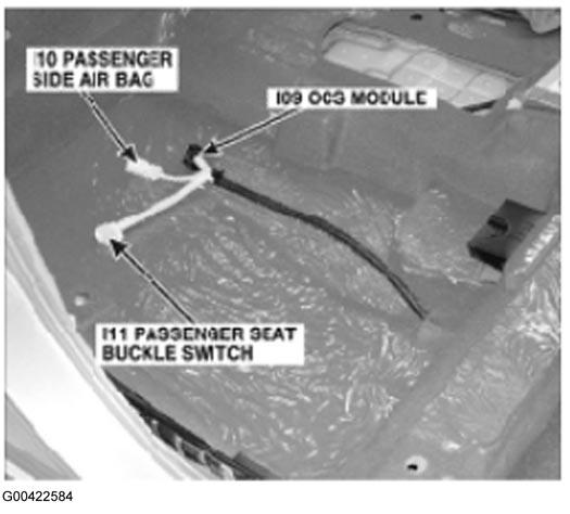 | OCS Module (Connector) | Under front passenger's seat. See Figure. |
