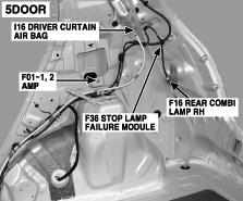 | Stop Lamp Failure Module (5 Door) | At right "C" pillar. See Figure. |