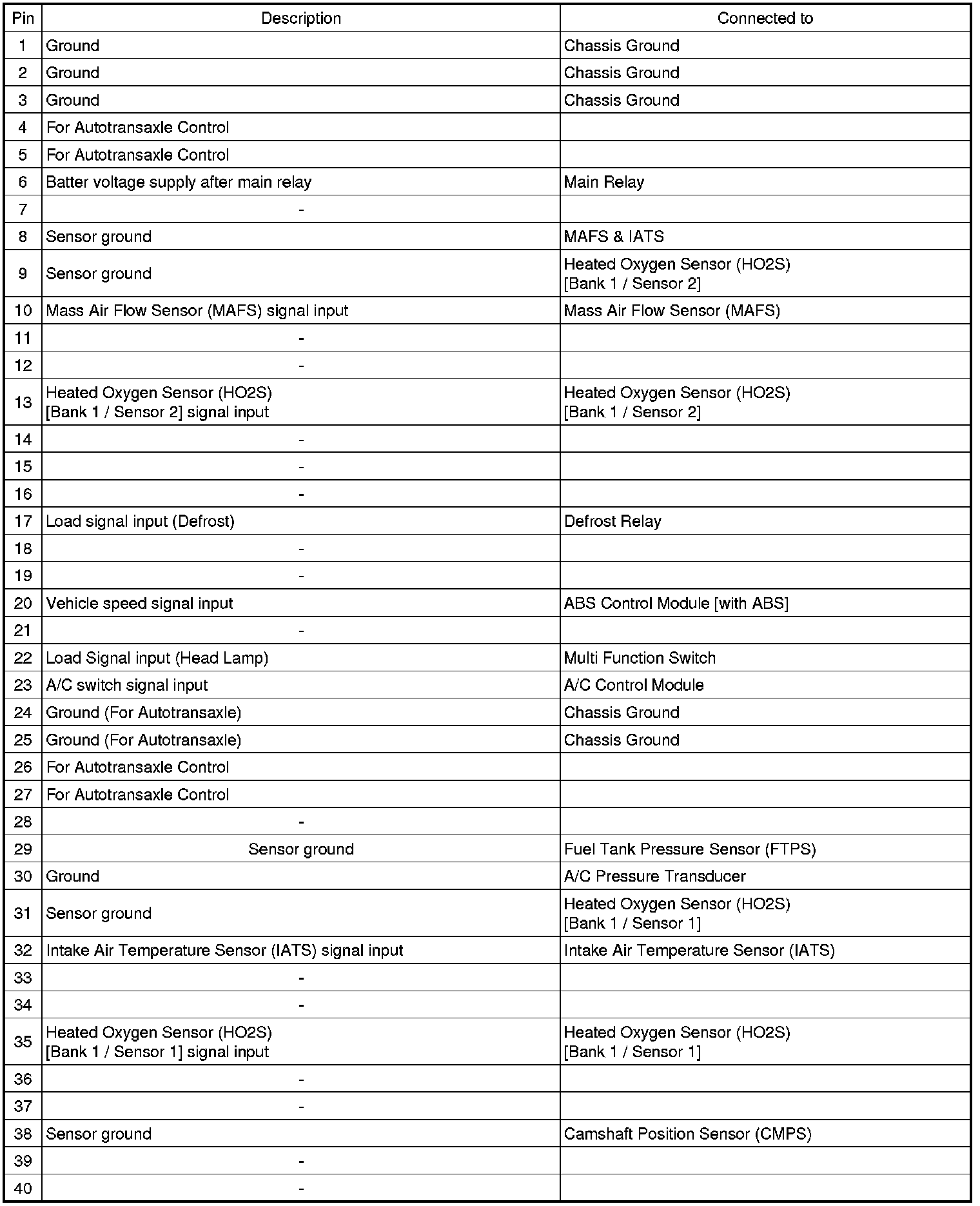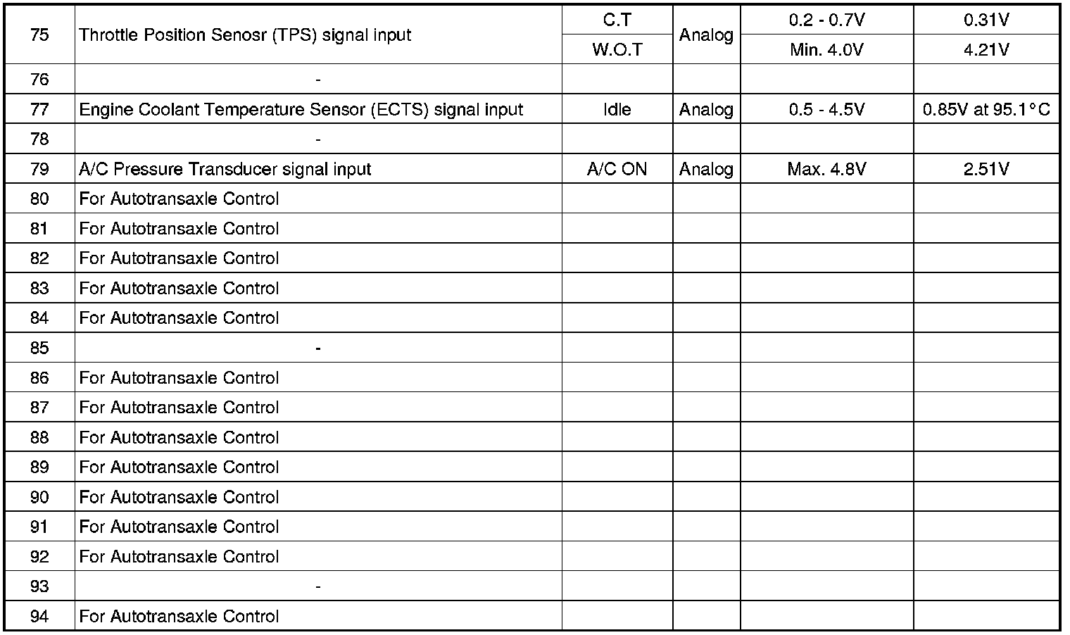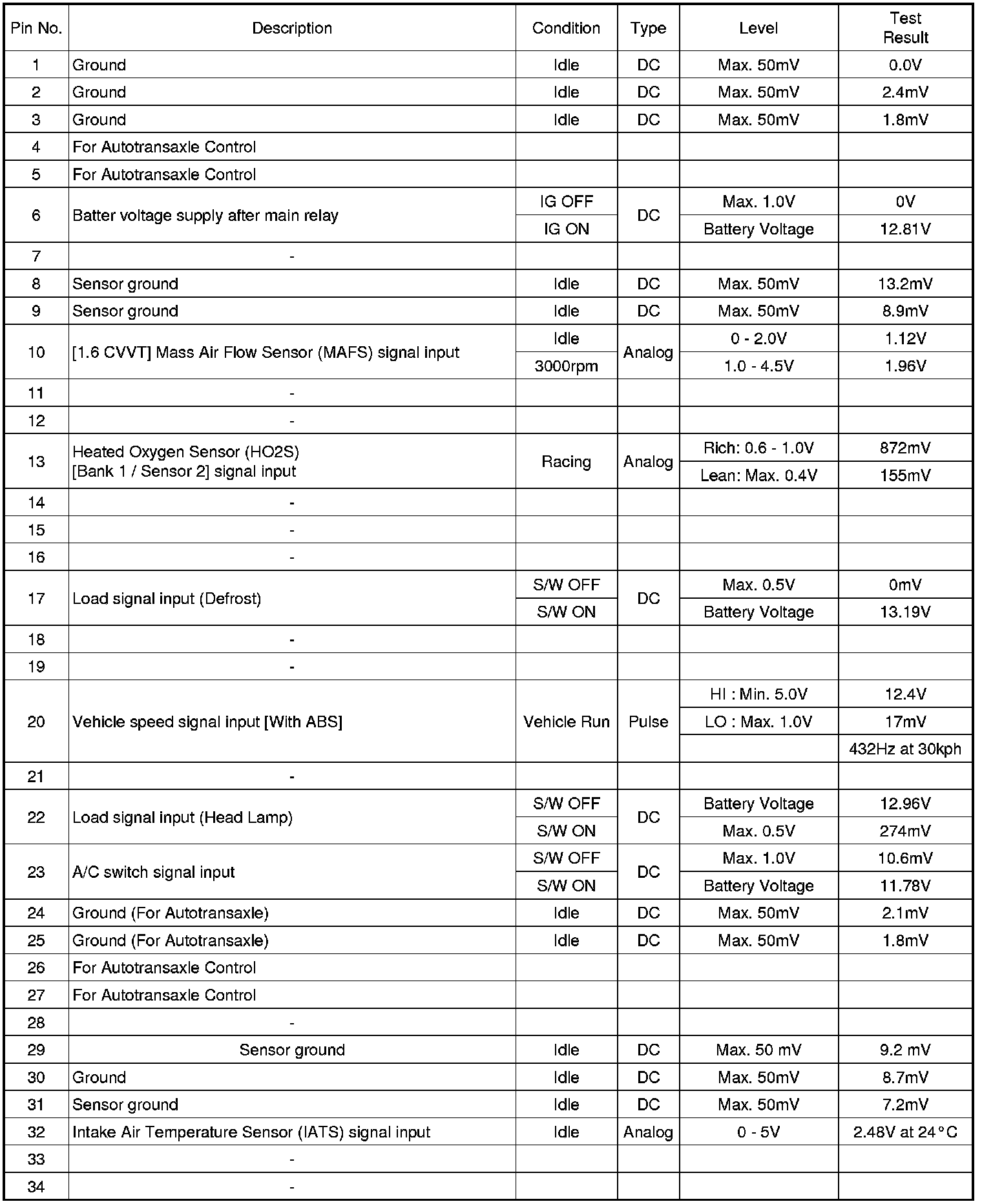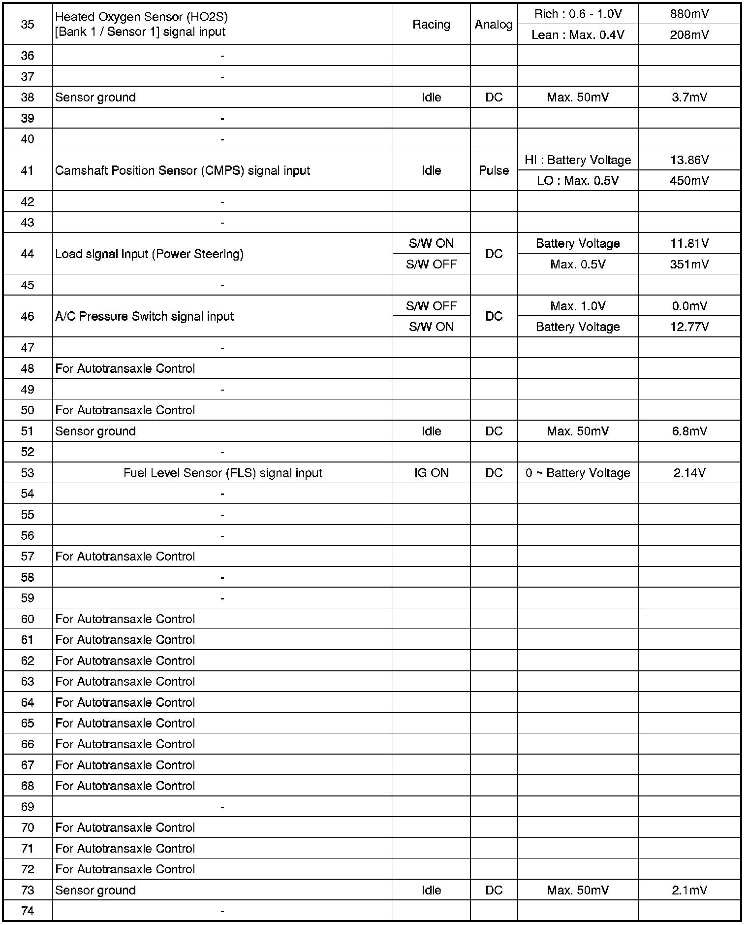 3. PCM TERMINAL IN/OUT SIGNAL (A/T)