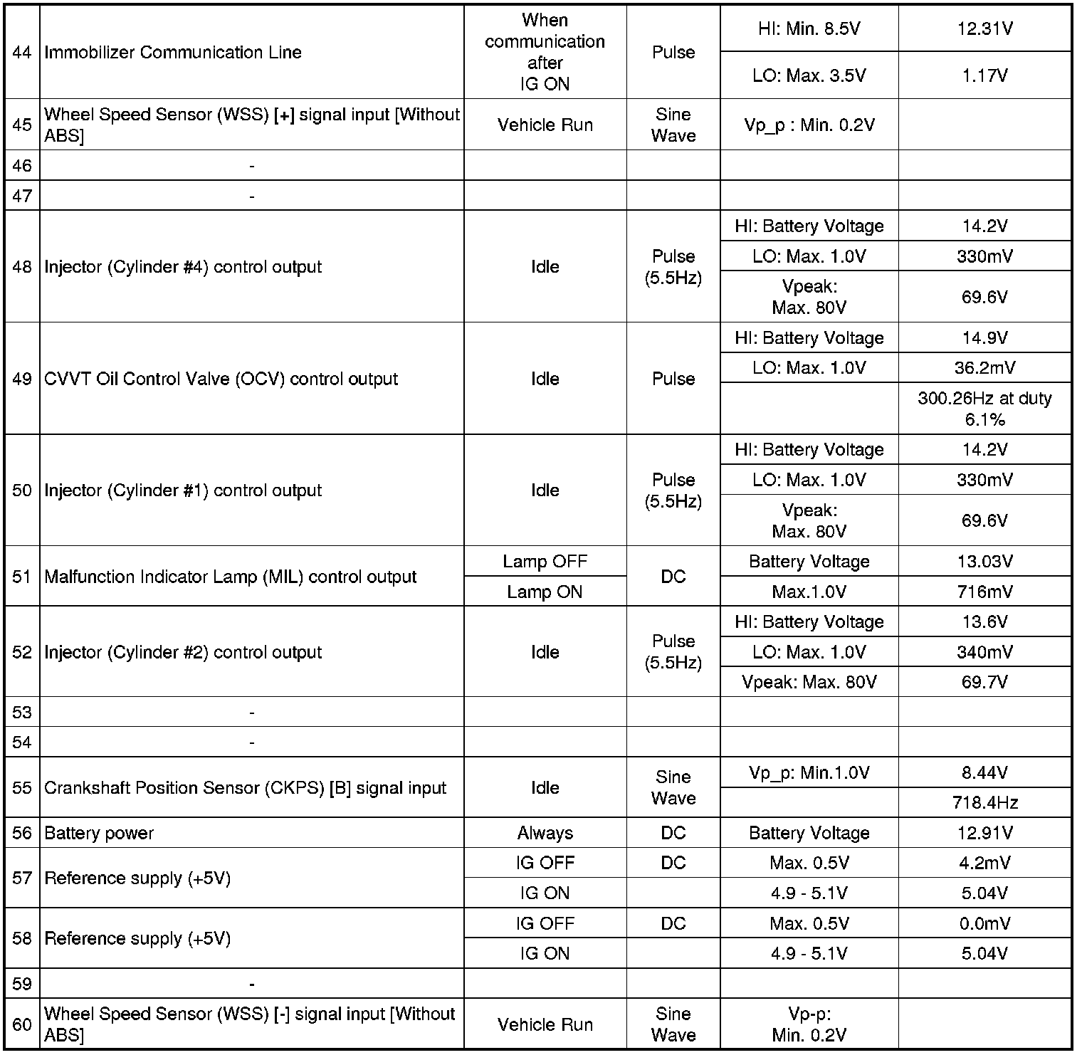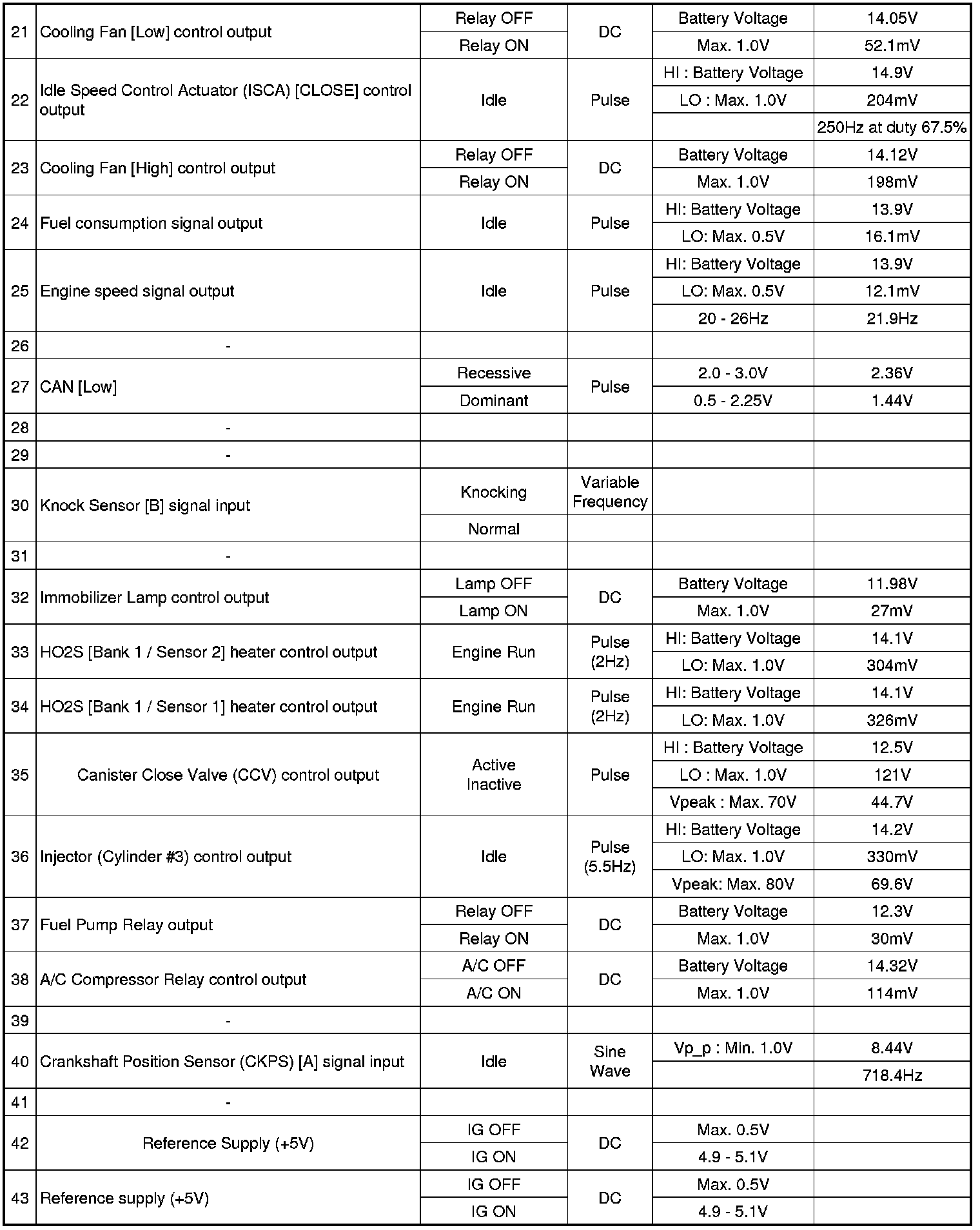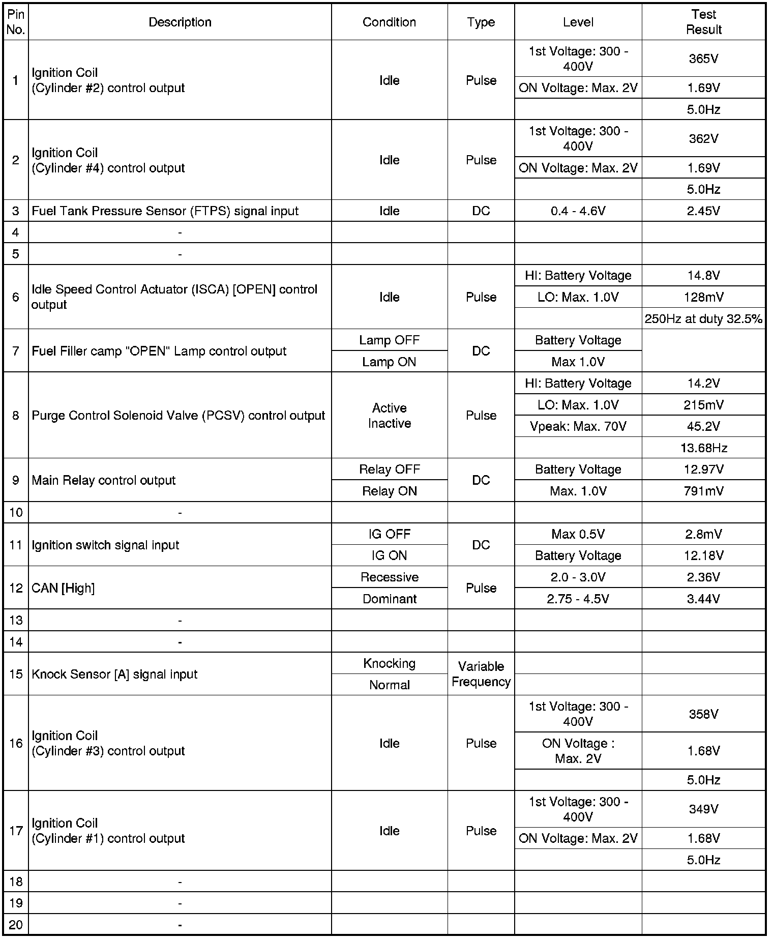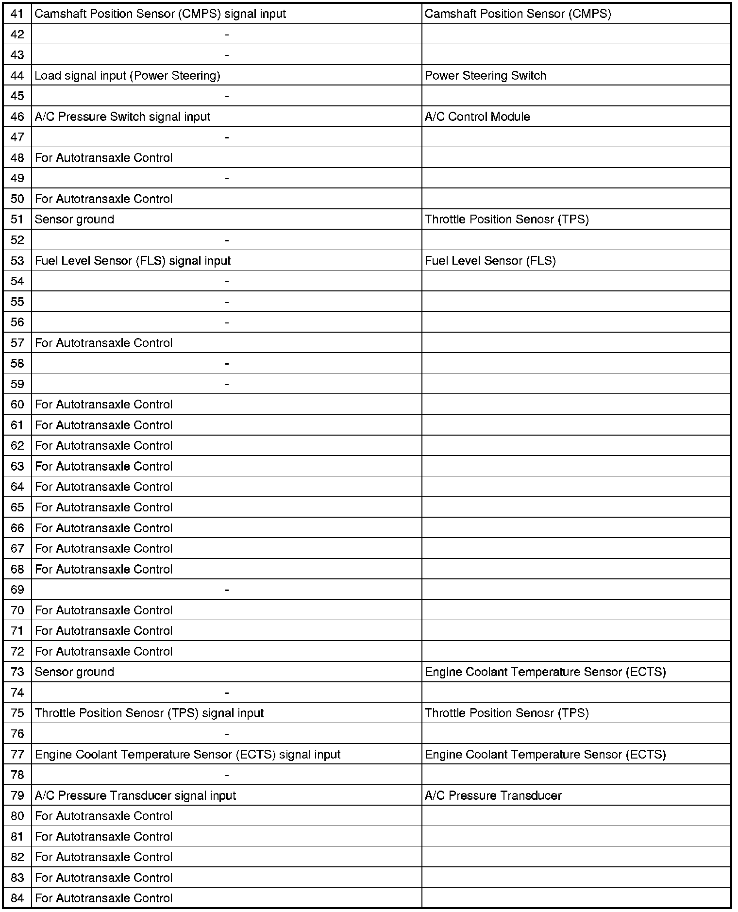 3. PCM TERMINAL IN/OUT SIGNAL (A/T)