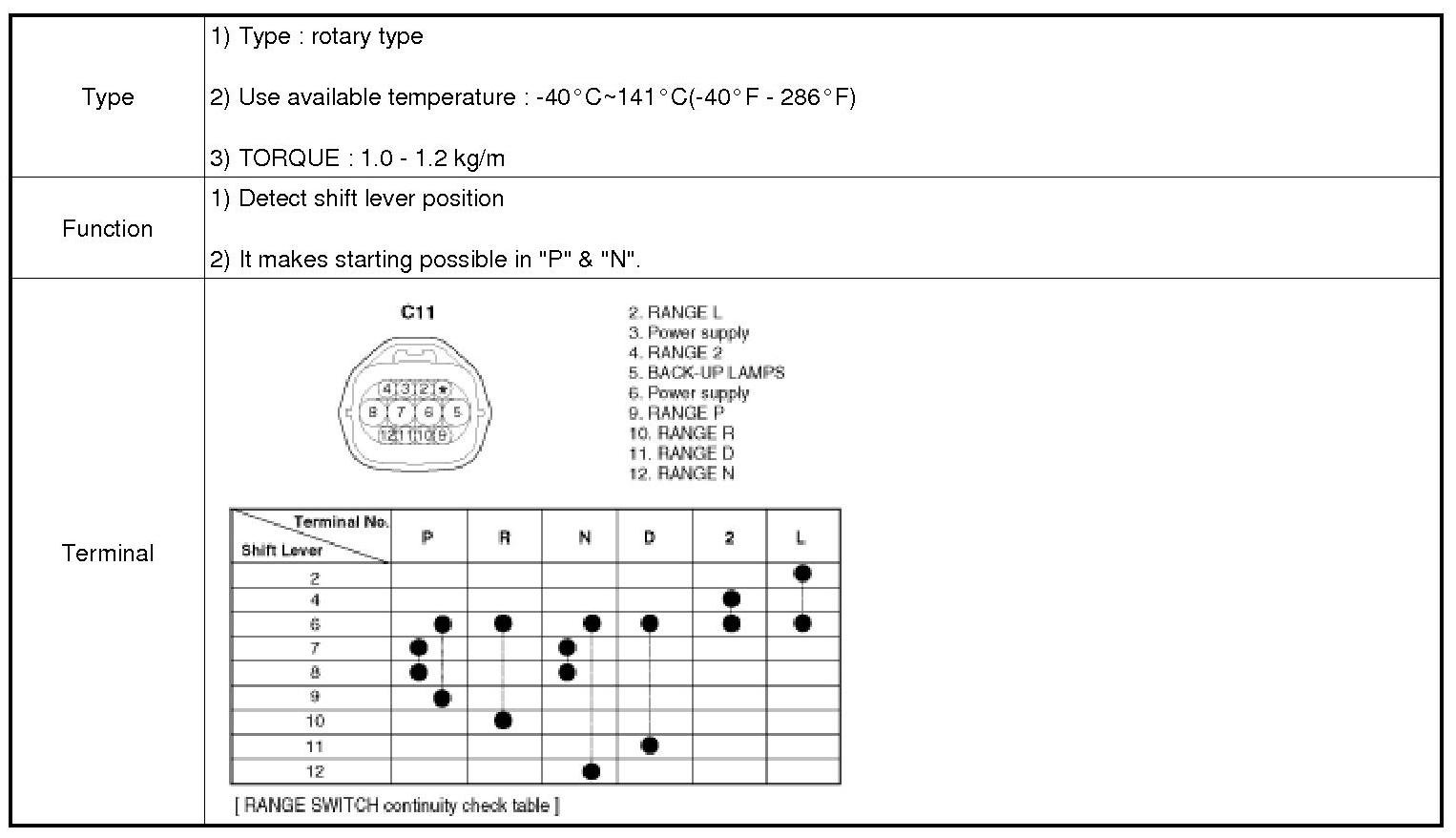 The inhibitor switch, in addition to the start safety device, also includes a circuit for detection of the selector lever position, for sending signals to the transaxle control module.