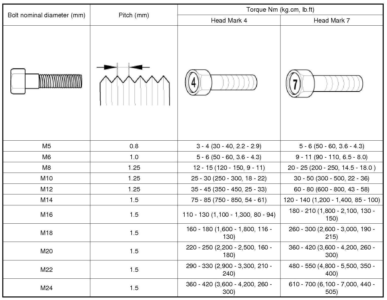 General Torque Specifications