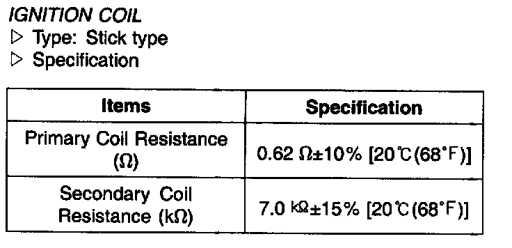 Ignition Coil: Specifications