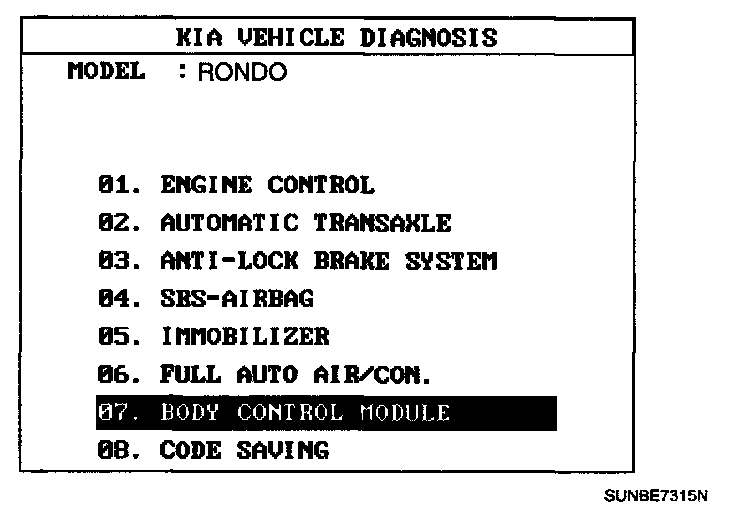 2. Select option "BODY CONTROL MODULE" and press ENTER.
