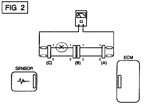 a. Disconnect connectors (A), (C) and measure resistance between connector (A) and (C) as shown in [FIG. 2].