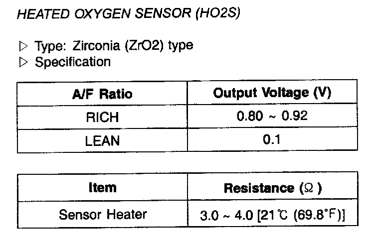 Heated Oxygen Sensor (HO2S) - Specification: