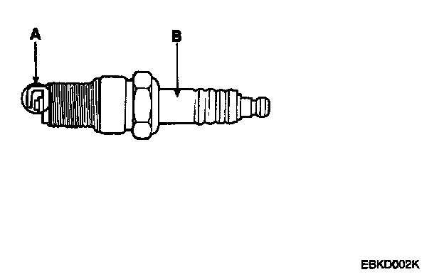 1. Inspect the electrodes (A) and ceramic insulator (B).