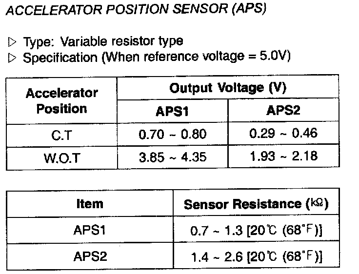 Accelerator Position Sensor (APS) - Specification: