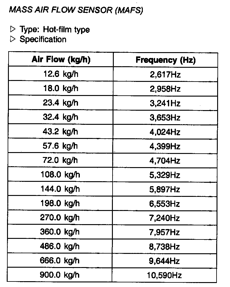 Mass Air Flow Sensor (MAFS) - Specification: