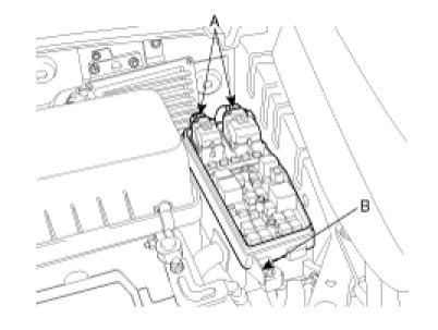 3. Remove the 2 FAM connectors(A) and battery terminal nut(B).