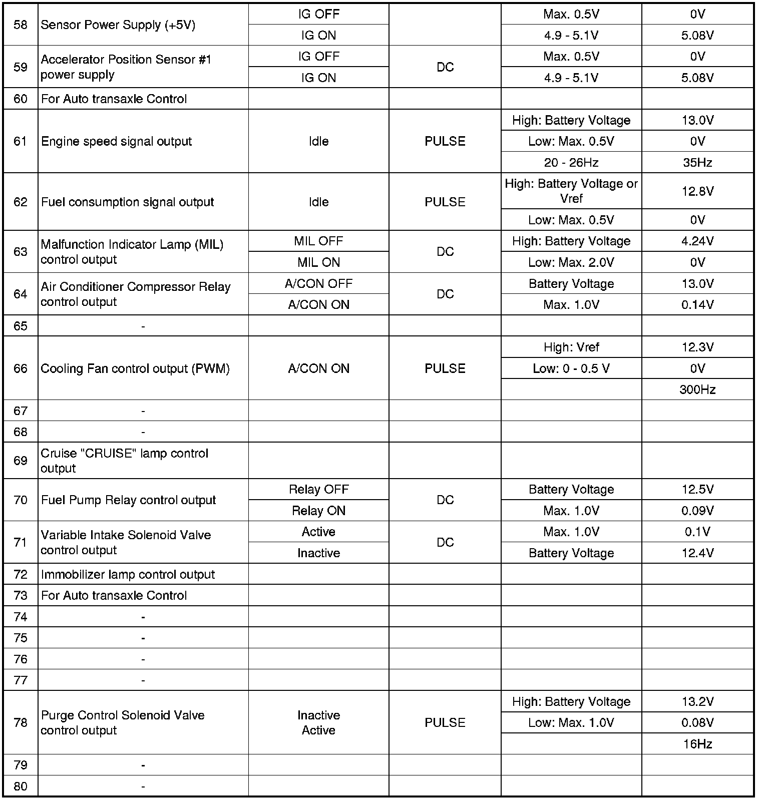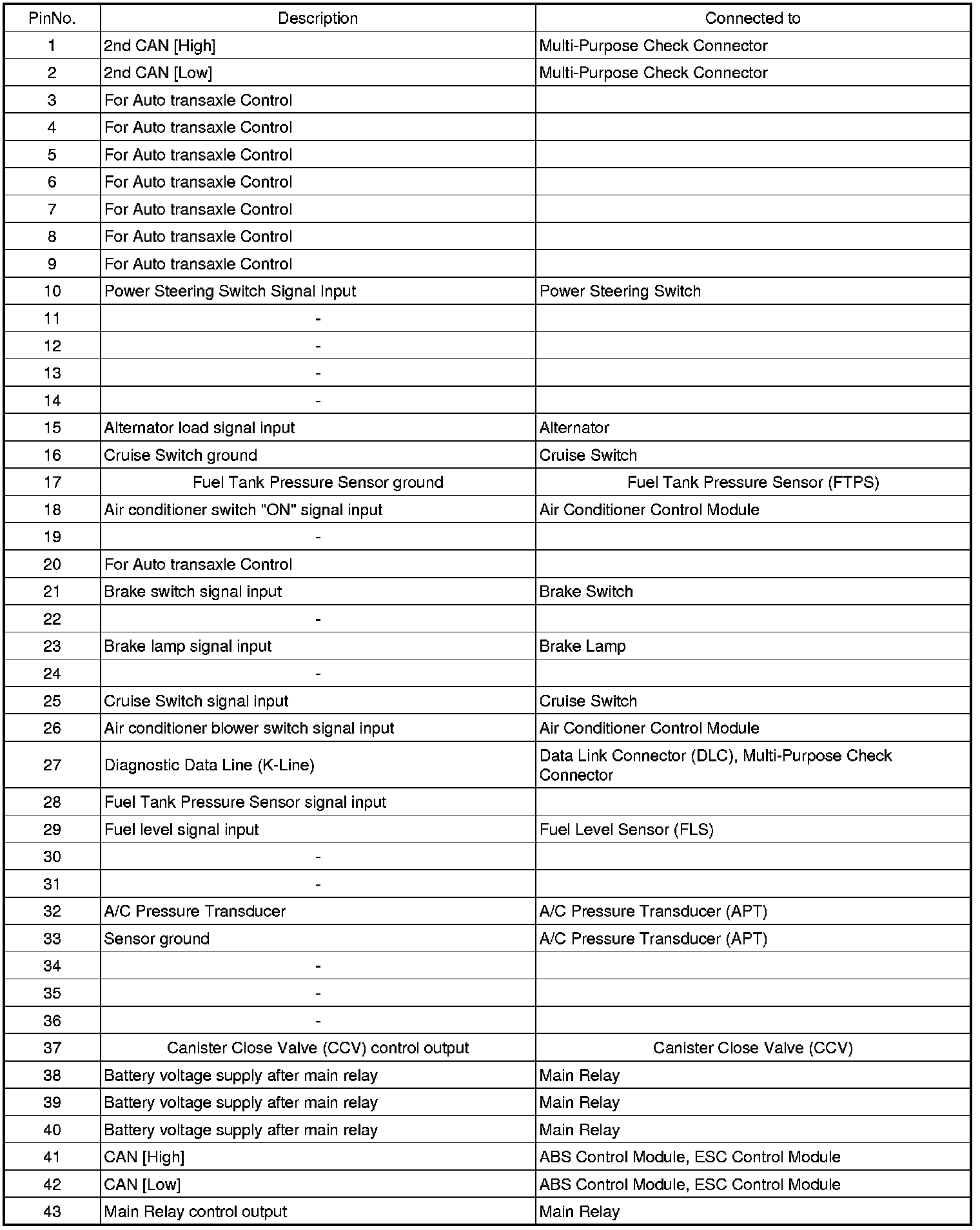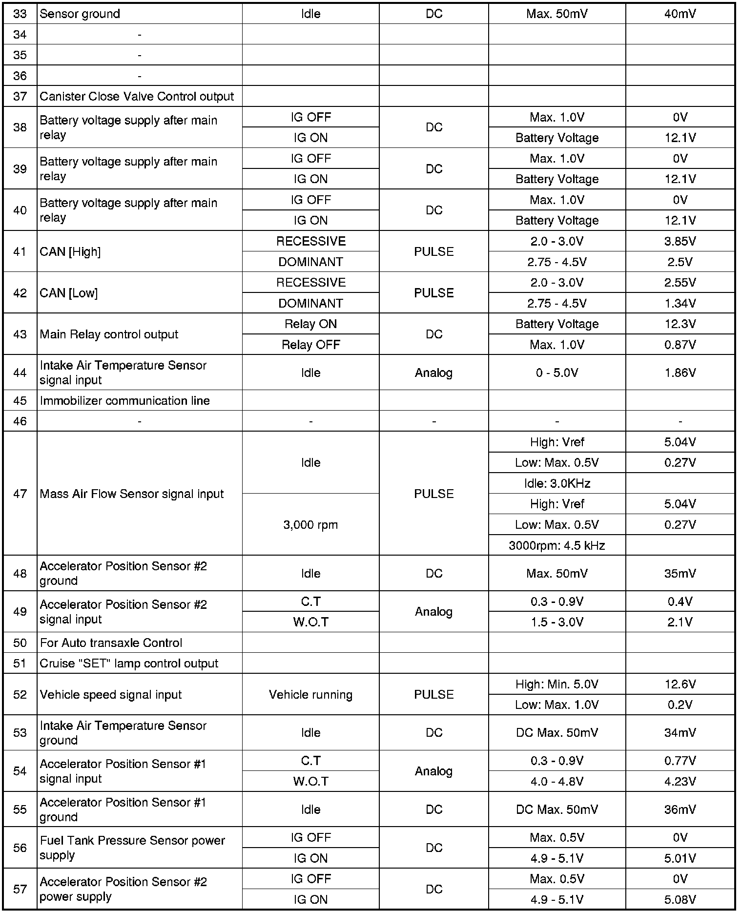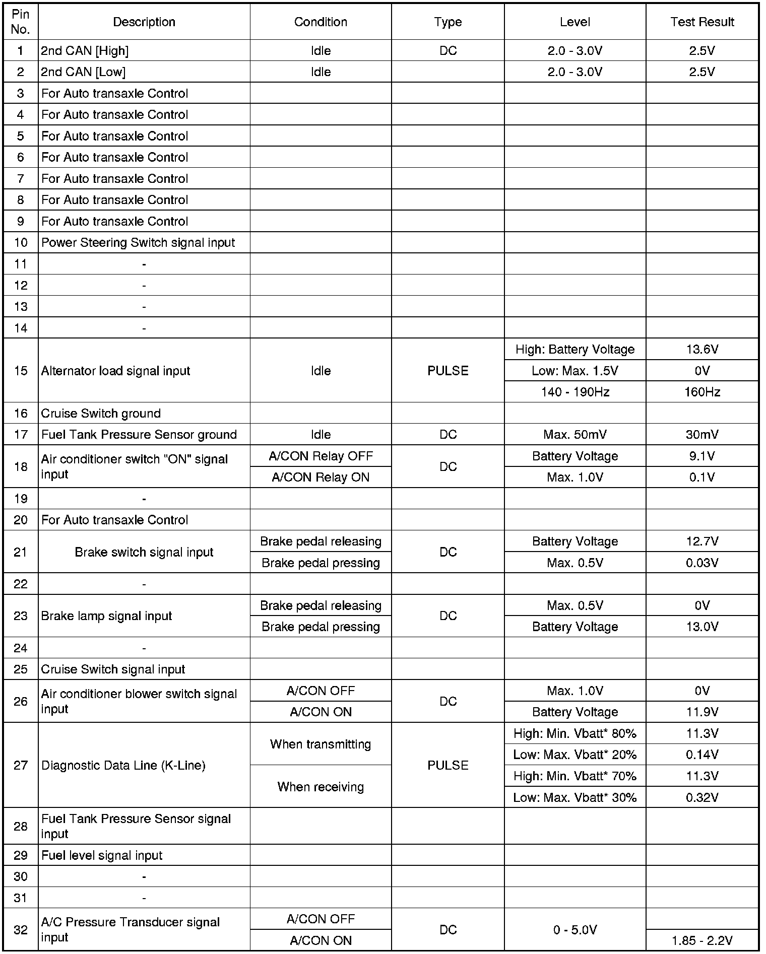 PCM TERMINAL INPUT/OUTPUT SIGNAL