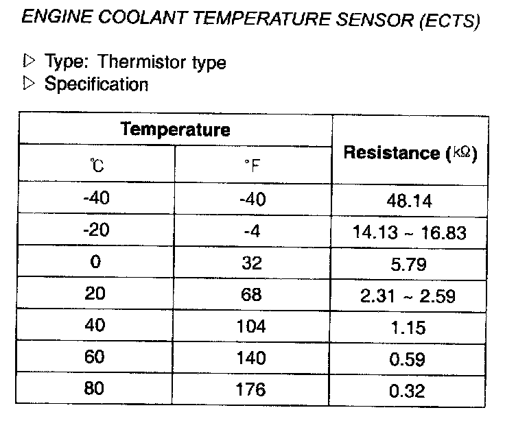Engine Coolant Temperature Sensor (ECTS) - Specification: