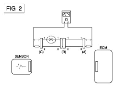 A. With each connector still connected, measure the voltage between the chassis ground and terminal 1 of each connectors (A), (B) and (C) as shown in [FIG. 4].