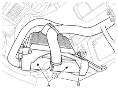 4. Unscrew the ECM mounting bolts/nuts (B) and remove the ECM from the air cleaner assembly.