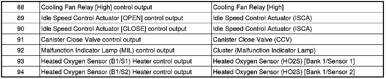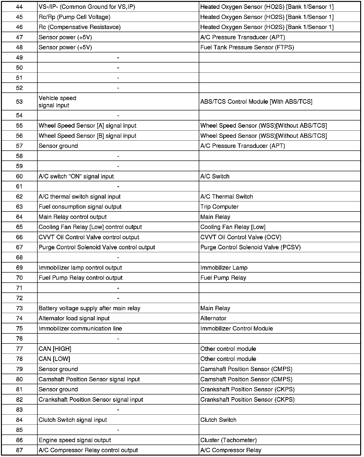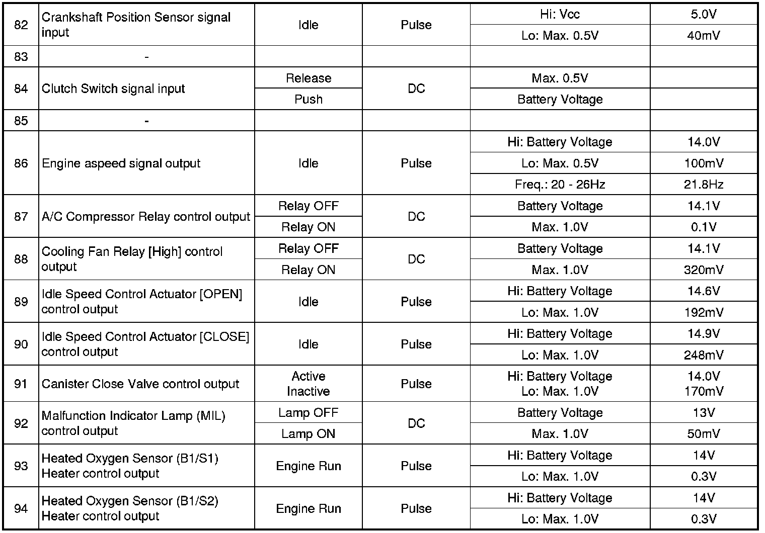 Pinout Values and Diagnostic Parameters