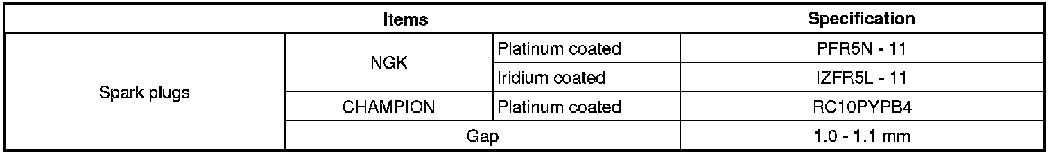 Spark Plug: Specifications