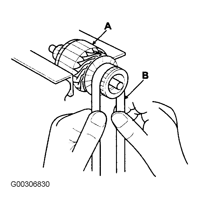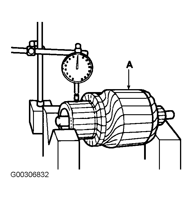 - Measure the commutator runout. See Fig 4. See STARTER SPECIFICATIONS . If the commutator runout is within the service limit, check the commutator for carbon dust or brass chips between the segments. If the commutator run out is not within the service limit, replace the armature.