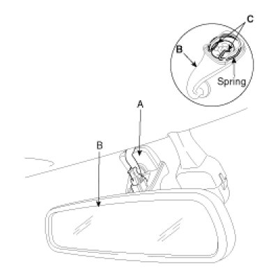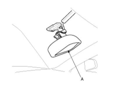 1. Push the inside rear view mirror base down to remove the inside rear view mirror assembly (A) after removing the mirror wire cover.
