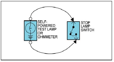 An ohmmeter can be used in place of a self-powered test lamp.