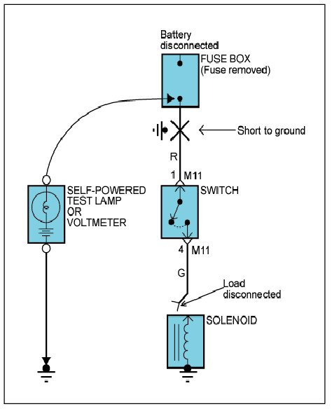 CAUTION: Never use a sell-powered test lamp on circuits that contain solid state modules. Damage to these modules may result.