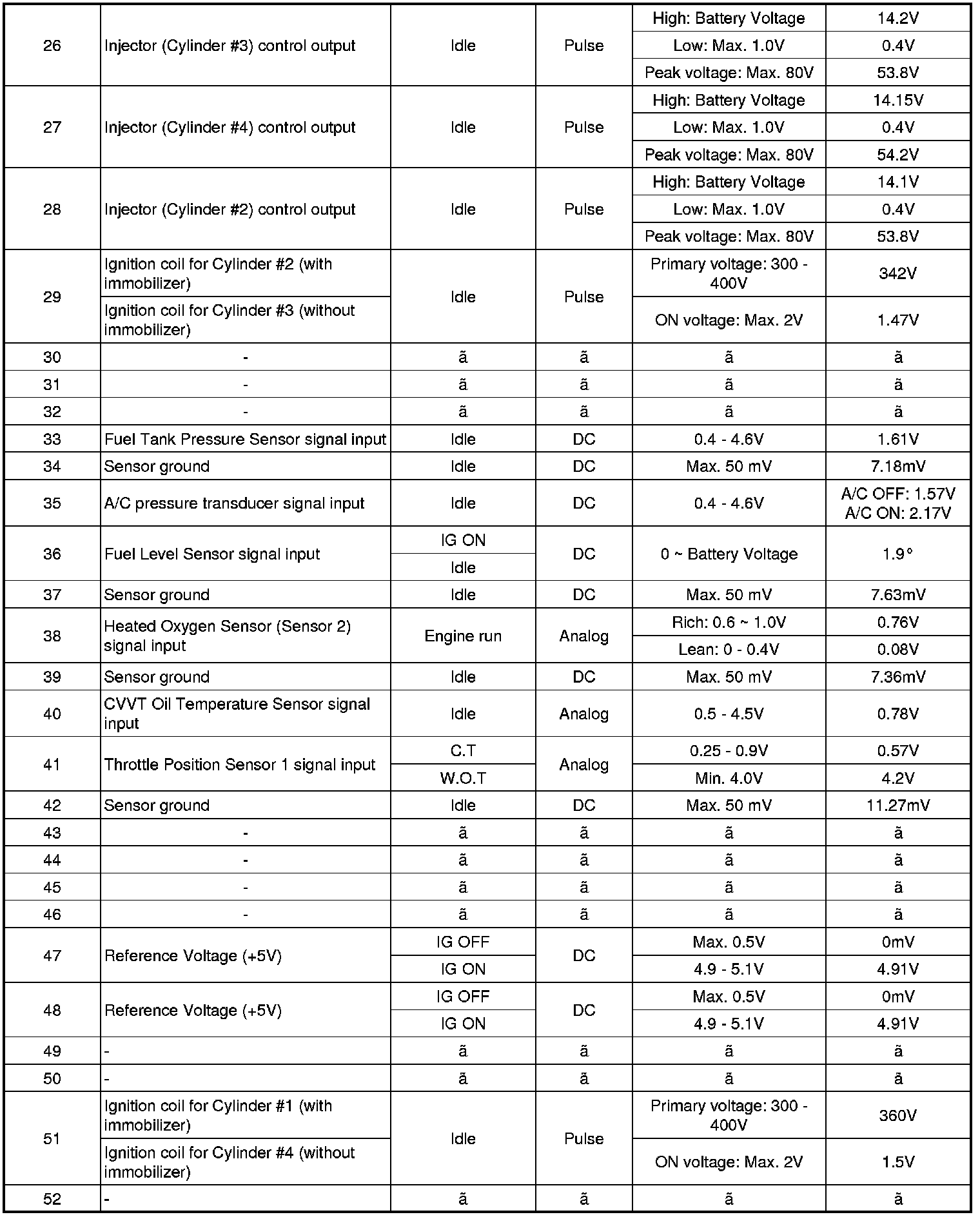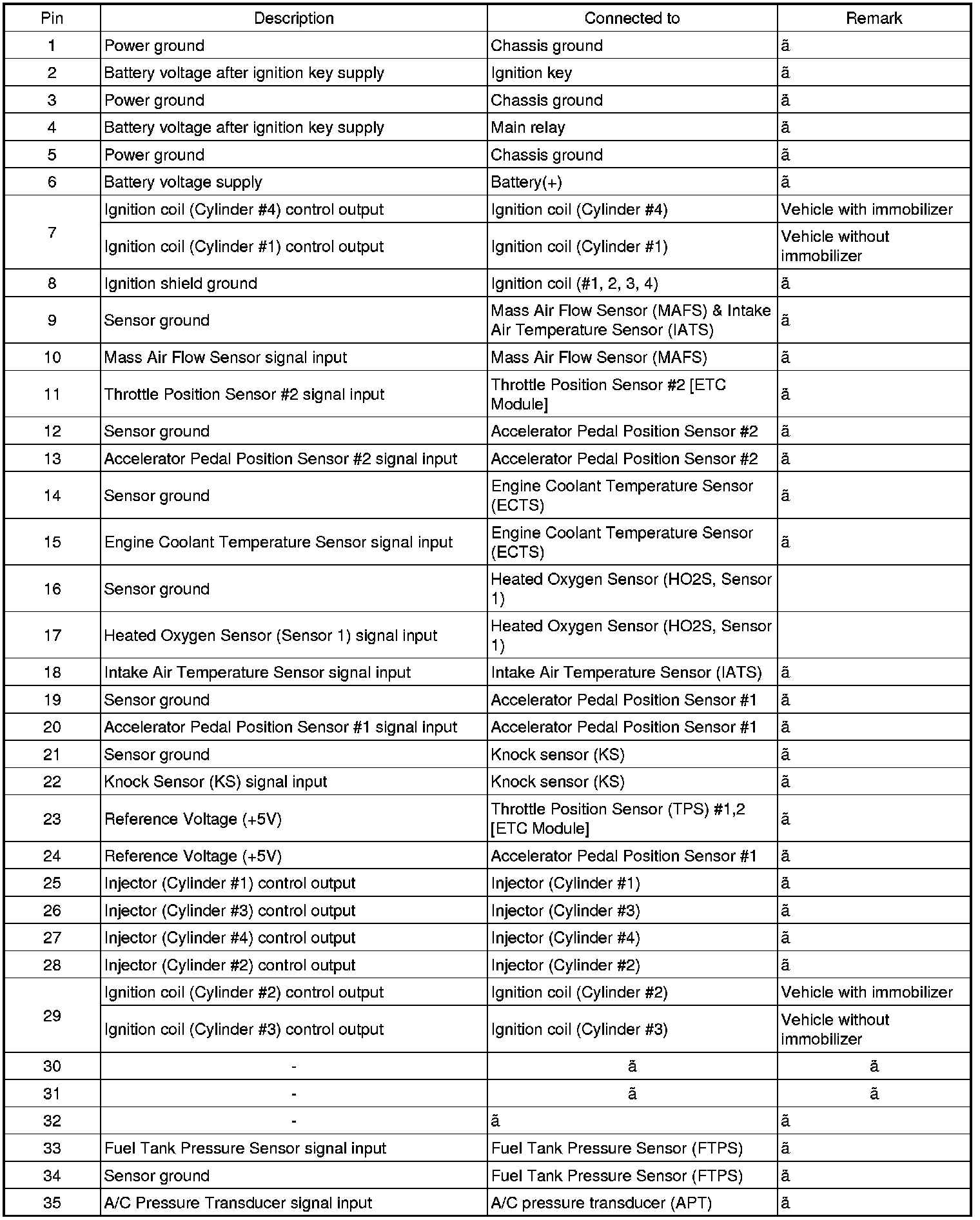 ECM TERMINAL INPUT/OUTPUT SIGNAL