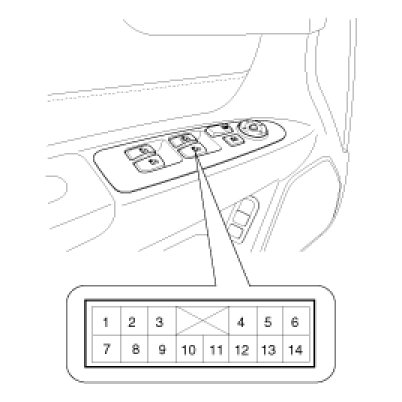 Home >> Kia >> 2008 >> Optima L4-2.4L >> Repair and Diagnosis >> Windows and Glass >> Windows >> Power Window Switch >> Testing and Inspection